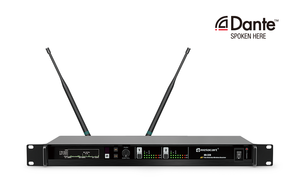 HR-32D双通道真分集无线麦克风系统具有创新的无线音频技术和独特的功能。强大的射频性能让您的音频系统得到全方面升级,让信号得到充分的保护,专为追求极致效果的演唱会和舞台剧等大型演出量身打造。它具有先进的真分集模式和自动扫频功能,支持扩展指向性天线以及Dante音频协议。