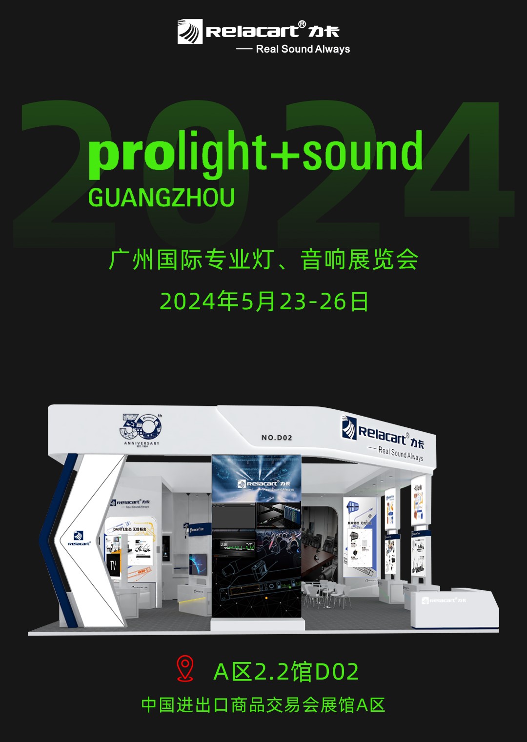 第22届广州国际专业灯光音响展览会即将到来,Relacart·力卡诚邀您届时大驾光临,深入体验了解新产品、新方案,让我们相约5月23-5月26日,不见不散!
