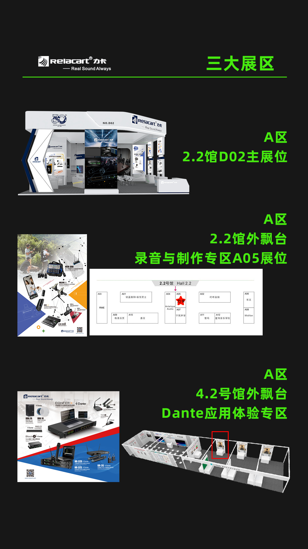 Relacart·力卡是国内专业研发生产麦克风音频设备厂家,至今已有30年的丰富经验。本次展会也将继续于A区2.2馆D02开设展位,并且带来众多新品。诚邀您届时莅临展位指导,深入体验Relacart·力卡新产品、新方案!