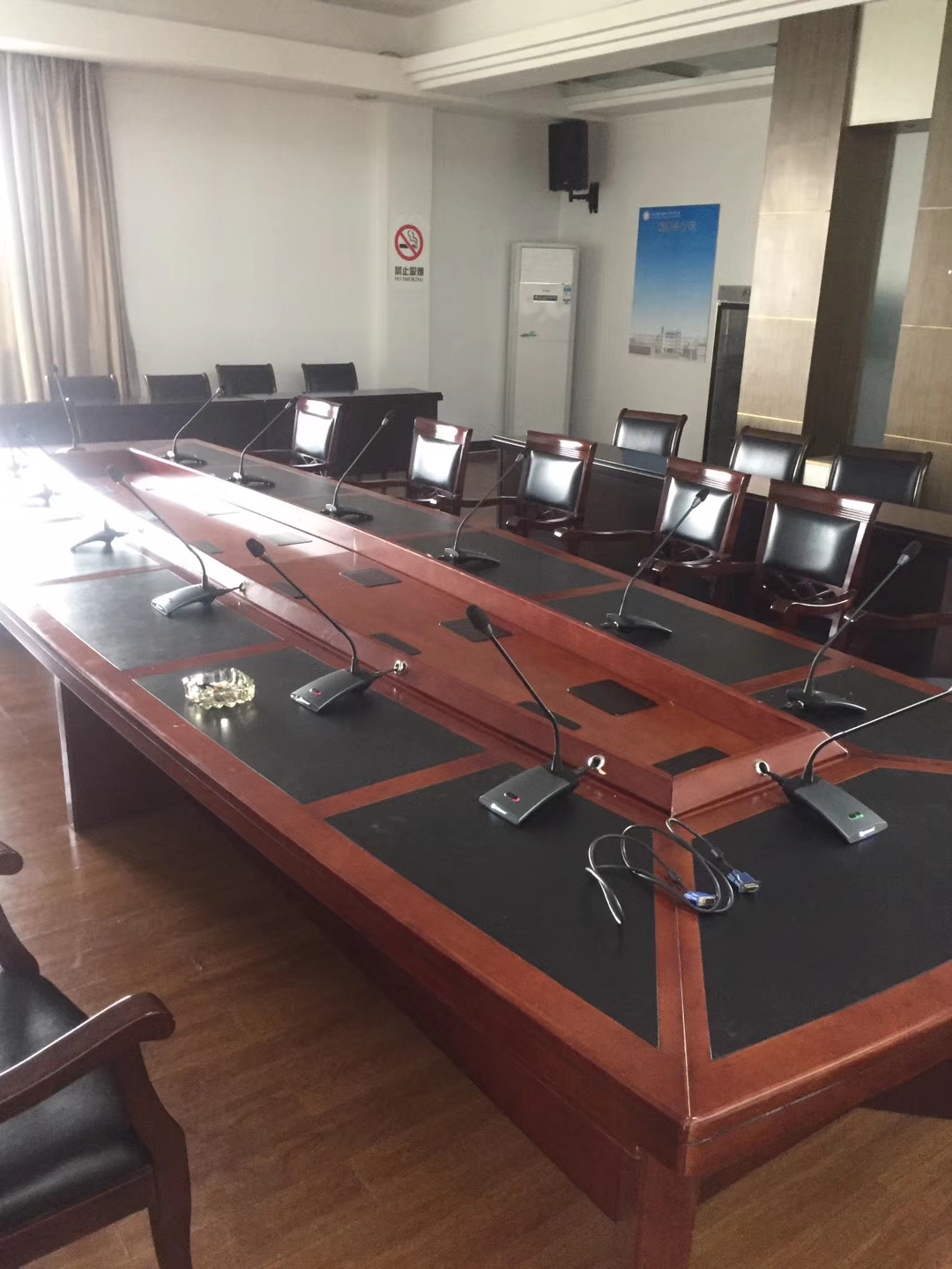 本次共安装一台CS-101主机搭配供14支会议单元。正常情况下力卡CS-101最多可连接45支会议单元拓展,连接力卡辅助电源EXP-12V45,可拓展为104个,满足与会人员增加的使用需求和更大型会议室的安装要求。