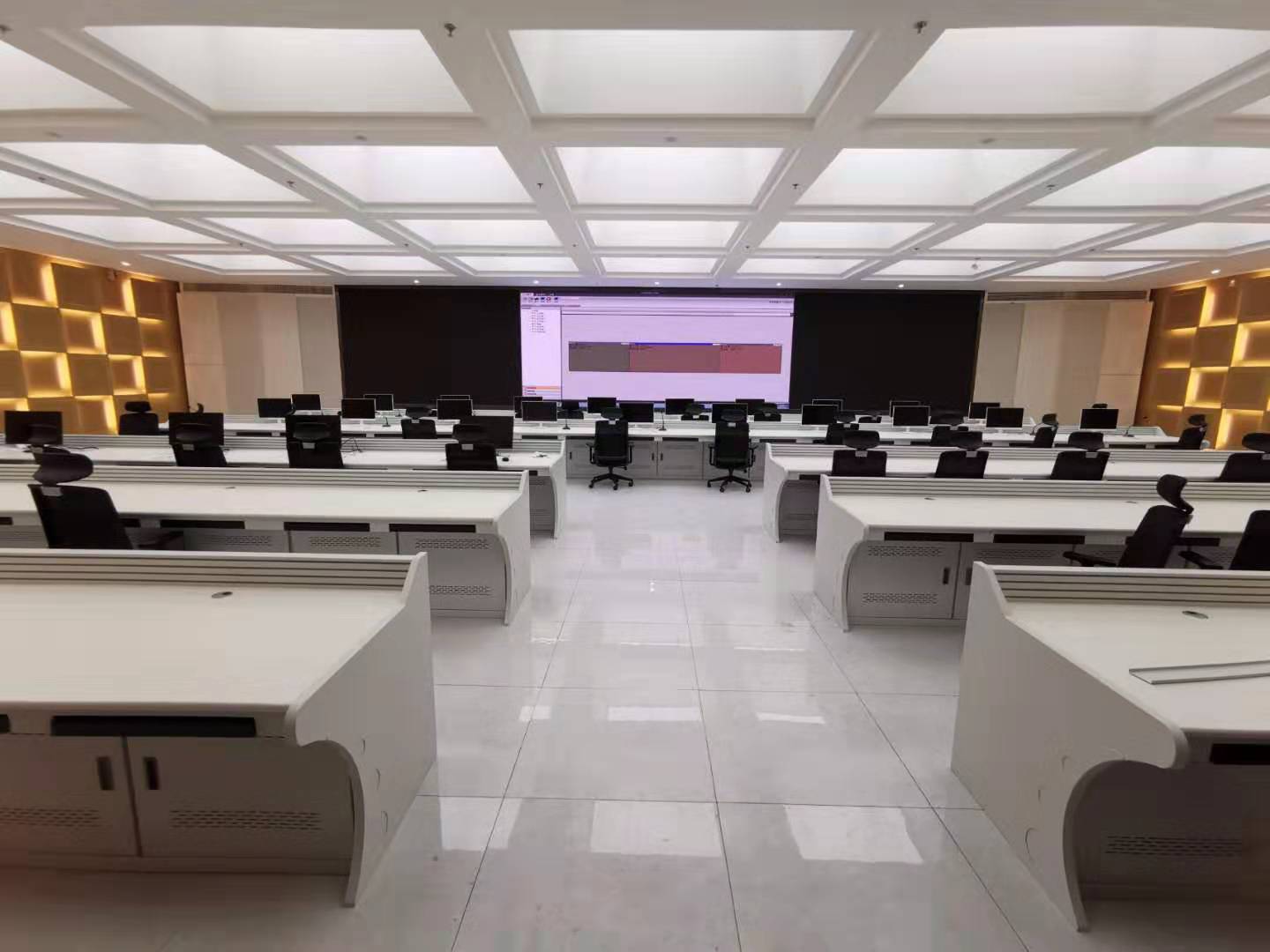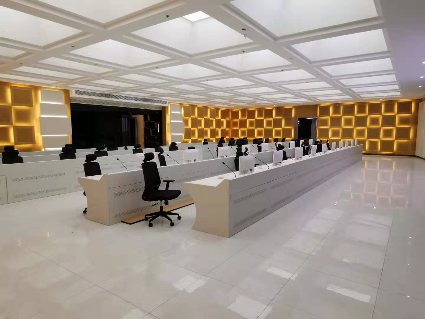 该公安大数据中心会议厅装修风格简洁严谨,室内宽敞明亮,声音传播空间较大。会议室与会人数在44人左右,发言人数20多人。客户要求设备外型与会议厅整体风格符合,能适应会议厅较大的空间,实现清晰稳定地传音,实时在线讨论。根据这个情况,最终客户选用力卡ER-5700双通道真分集无线麦克风系统和WAM-432 全自动智能无线混音系统。