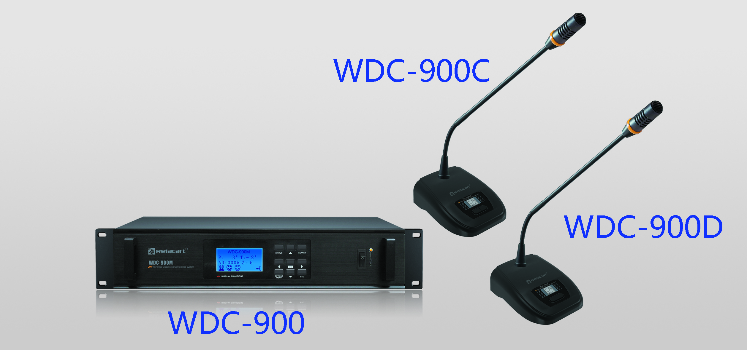 WDC-900为无线会议中央控制主机,其配套的产品有WDC-900C无线主席单元和WDC-900D无线代表单元。