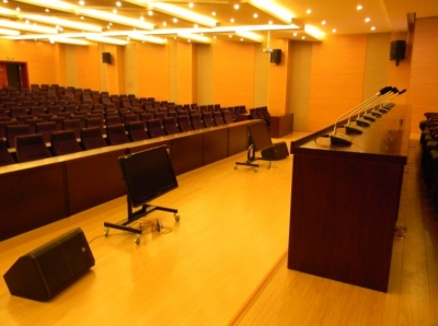 云南师范大学学术报告厅可容纳两百多人。在首次招标时,学院领导就明确表示,报告厅面积比较大,墙面地板所用材质特别,对声音传播多少有影响,所选产品必须能把声音清晰明亮地传播出去,并且在进行中外技术交流时,对方接收到的声音效果也要如同亲临现场一样。经过多番试音、竞标,学院最终选用了Relacart力卡CS-200会议讨论系统,其中主机1台,主席1支,代表11支。力卡CS-200是一款多功能、经济实惠、性价比极高的手拉手会议讨论系统,其最大的特点是代表单元和主席单元内置扬声器和话筒,其中智能自动压控电路,可有效减少人声远、近距离演讲失真的问题,极大程度上满足了大中型会议室需求;系统安装简便;有讨论模式、自动模式可供选择;可连接电话耦合器实现远程电话会议,使会议无边界进行,是政府单位、法庭、学术报告厅和国际会议中心的理想首选。