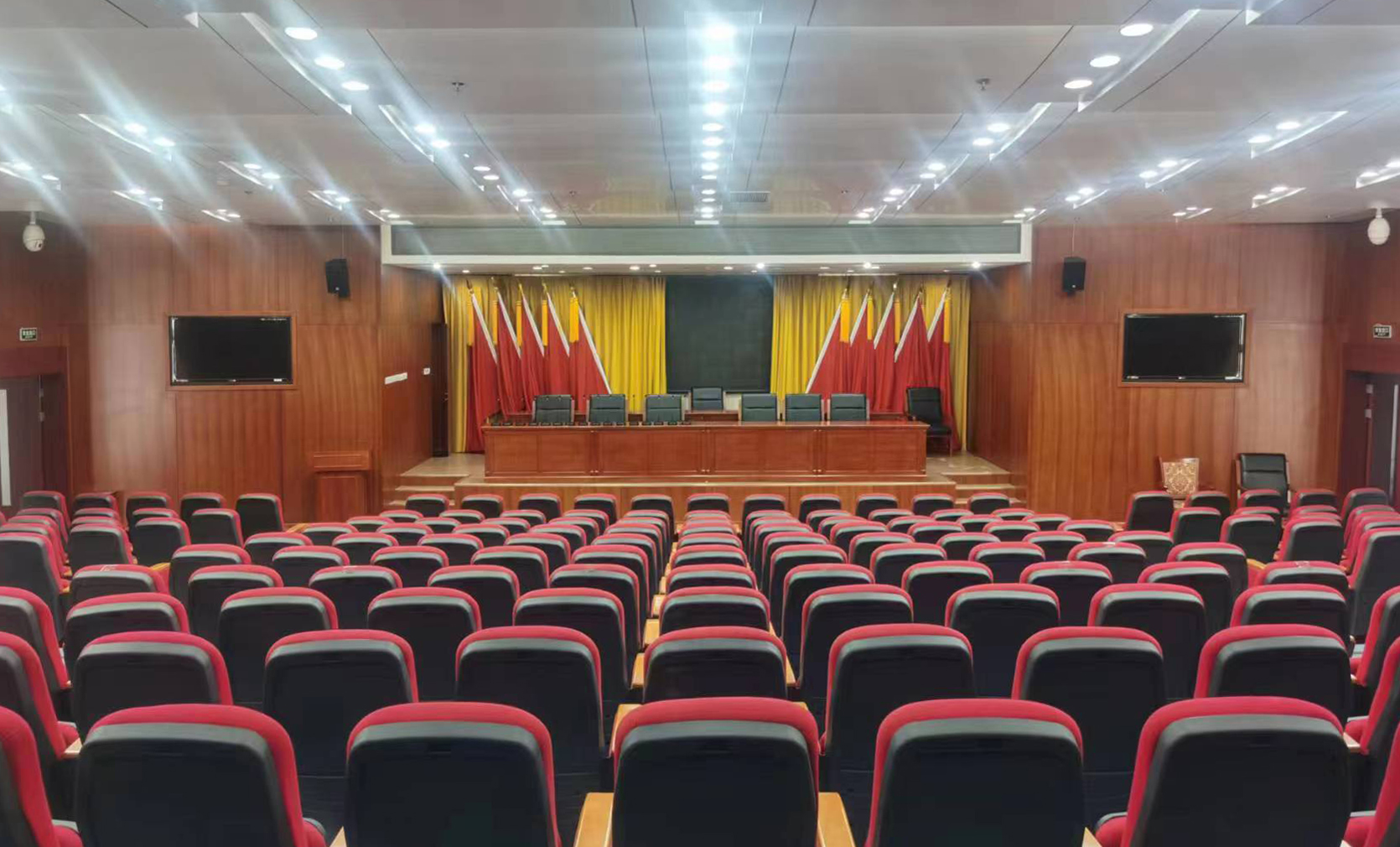 为了解决旧麦克风系统设备不互通和无法灵活布置的情况,力卡工程团队决定在多功能报告厅和会议室均使用 WDC-900数字无线会议讨论系统、ER-5700双通道真分集无线麦克风系统,使用无线连接可以更好地满足防疫要求和设备灵活布置的要求。