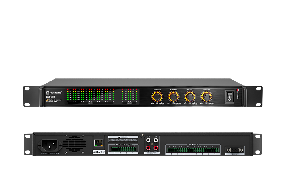 采用40 bit 浮点运算, 工作主频 > 450MHz 的高速DSP芯片,搭配Relacart核心技术团队自主研发的数字音频自动混音算法,始终保持着展现出真实声音的风格;并支持Dante麦克风混音功能