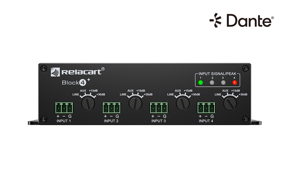 Block 4+是一款功能强大操作简便的Dante数据转换盒,提供4路话筒输入(话筒输入带48V幻象供电)/4路线路输入和4路线路输出。可为特定场所和系统的优化提供整套音频处理解决方案。适用于Dante音频场合改造,升级传统音频系统。
