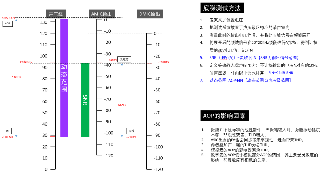有一个重要的参数是麦克风的AOP(最大输出声压级),定义为当失真达到10%时的声压级。超过这个AOP,麦克风就会出现严重失真。