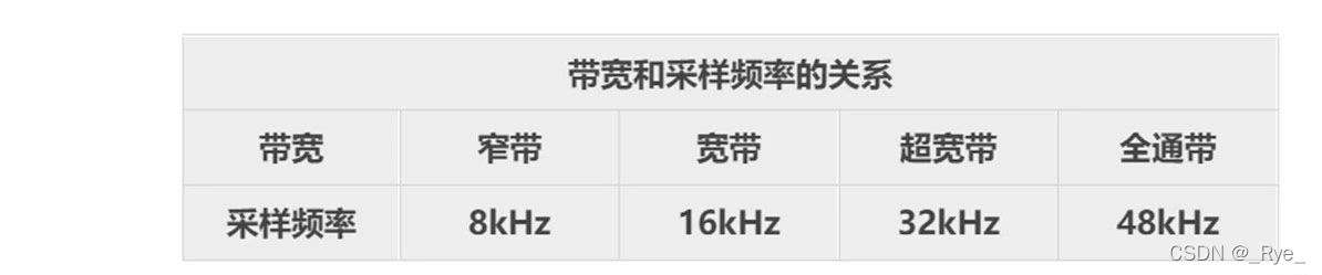 一开始举的那个例子,即 48kHz、每个采样点用 16bit 的浮点来表示的音频。实际上,音频压缩的第一步就是从这些音频的参数出发来缩减采样率和采样精度非线性量化。先了解点基础知识,根据编码音频的带宽,可以把音频分为窄带、宽带、超宽带和全通带。下表中列出了带宽和采样频率的关系。