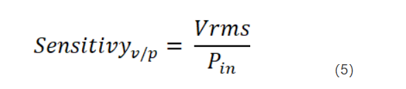 单位为: V/Pal,表征的含义为每个大气压产生多大的有效电压信号。式中Vrms为上面公式(4)计算的值,Pin 为上面公式(2)计算的值。