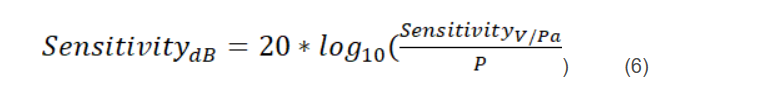 式(6)中的P为参考输出,目前标准采用的是1V/Pa,或者1000mV/Pa;注意:式(6)中分子与分线的单位需要一致,即要么都是V/Pa,要么都是mV/Pa;