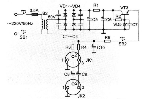 卡农插座JK1用于与话筒连接,JK2用于与话放连接,都是平衡信号。
