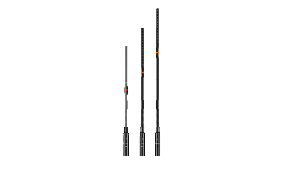 GS-838/845/853系列是一种采用声干原理超细型会议话筒,卓越的方向性和精巧的设计,具有高灵敏度和超指向特点,设计于增强收音,电视广播、会议等高要求的收音应用。双鹅颈的设计,可将收音头灵活调校到任何位置,并附有防风海绵罩,可降低在讲话时收到不雅的喷气声及其他风声的情况出现。 左:GS-838话筒长度:380mm | GS-845话筒长度:450mm | GS-853话筒长度:530mm