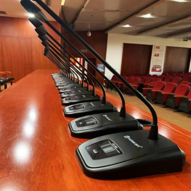力卡本次会议方案受到了高丽营镇人民政府工作人员的一致好评,无线连接的方案使会议环境更整洁大方,使用完后还可以将话筒收集回来集中放置,进行统一管理;28年力卡匠心智造,更多的系统集成方案提供给用户选择。