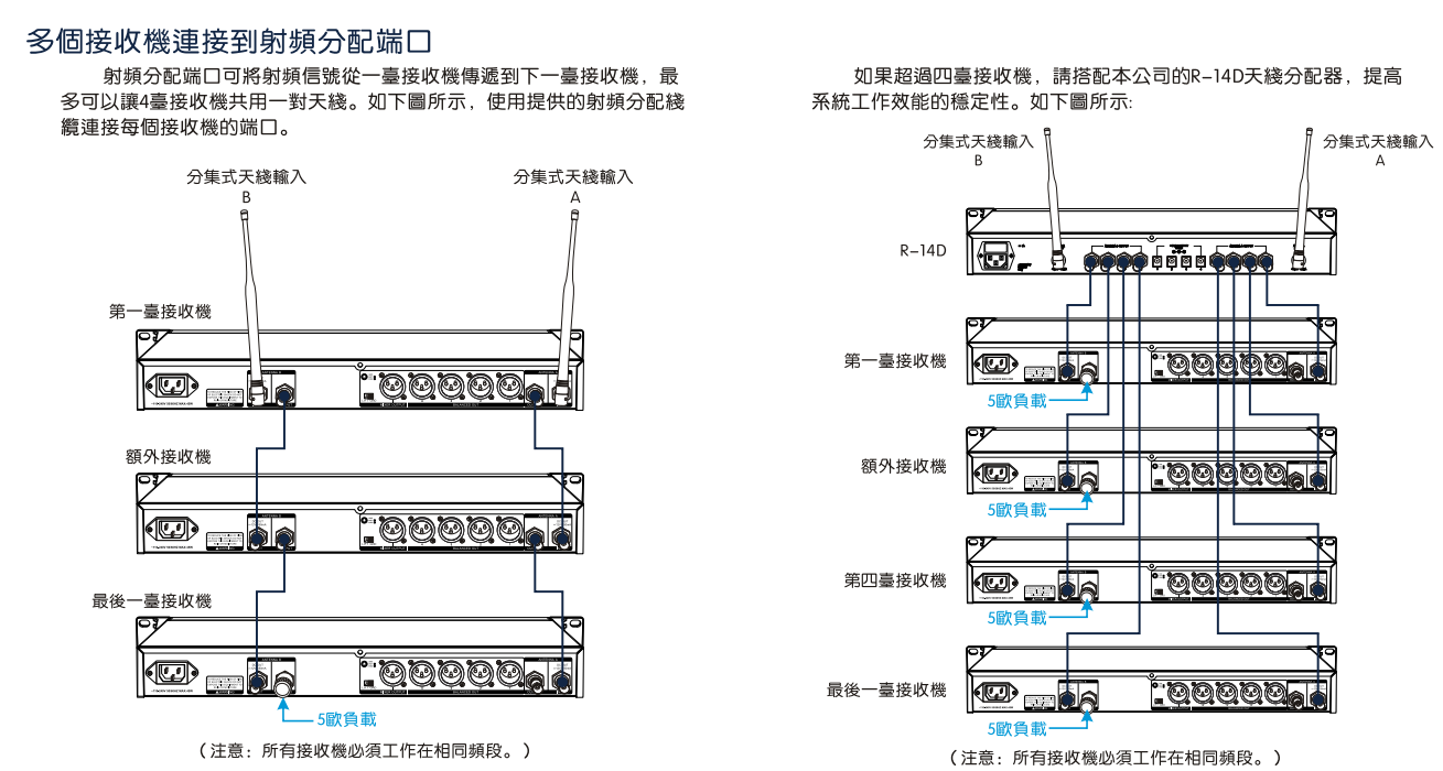 超宽频段UHF 522MHz-936.85MHz,纯分集接收;每个通道分频组与频点设计,确保在最窄的频段范围内能够同时使用尽量多的无线话筒。