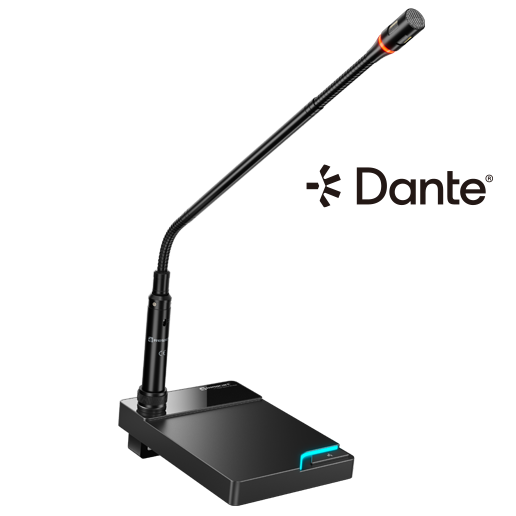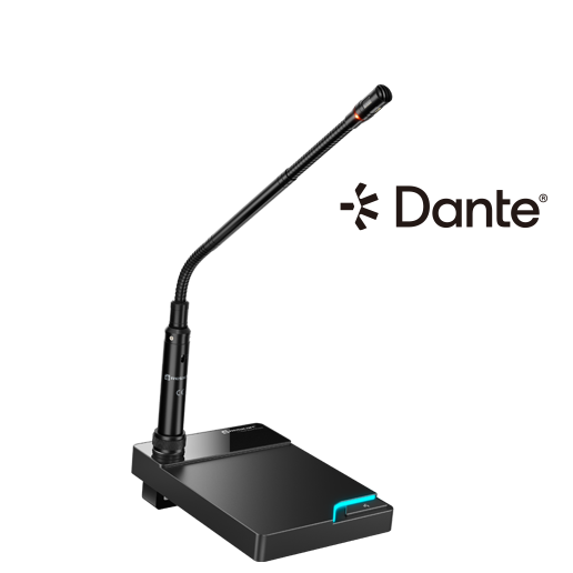 TDN1-F是一款具有Dante功能的桌面式话筒底座,适用卡侬公头输出的鹅颈话筒快速安装,底座的设计于平面放置应用,提供高质量收音,会议,远程教学等主要求收音应用。可与市面上各大品牌的鹅颈式会议话筒咪杆搭配使用。
